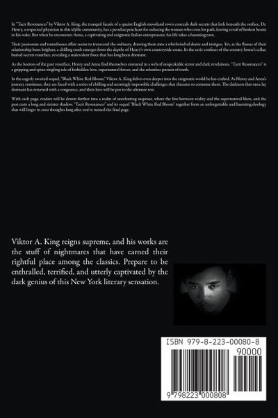In "Tacit Resonances" by Viktor A. King, the tranquil facade of a quaint English moorland town conceals dark secrets that lurk beneath the surface. Dr. Henry, a respected physician in this idyllic community, has a peculiar penchant for seducing the women who cross his path, leaving a trail of broken hearts in his wake. But when he encounters Anna, a captivating and enigmatic Italian entrepreneur, his life takes a haunting turn. Their passionate and tumultuous affair seems to transcend the ordinary, drawing them into a whirlwind of desire and intrigue. Yet, as the flames of their relationship burn brighter, a chilling truth emerges from the depths of Henry's own countryside estate. In the eerie confines of the country house's cellar, buried secrets resurface, revealing a malevolent force that has long been dormant. As the horrors of the past resurface, Henry and Anna find themselves ensnared in a web of unspeakable terror and dark revelations. "Tacit Resonances" is a gripping and spine-tingling tale of forbidden love, supernatural forces, and the relentless pursuit of truth. In the eagerly awaited sequel, "Black White Red Bloom," Viktor A. King delves even deeper into the enigmatic world he has crafted. As Henry and Anna's journey continues, they are faced with a series of chilling and seemingly impossible challenges that threaten to consume them. The darkness that once lay dormant has returned with a vengeance, and their love will be put to the ultimate test. With each page, readers will be drawn further into a realm of unrelenting suspense, where the line between reality and the supernatural blurs, and the past casts a long and sinister shadow. "Tacit Resonances" and its sequel "Black White Red Bloom" together form an unforgettable and haunting duology that will linger in your thoughts long after you've turned the final page.