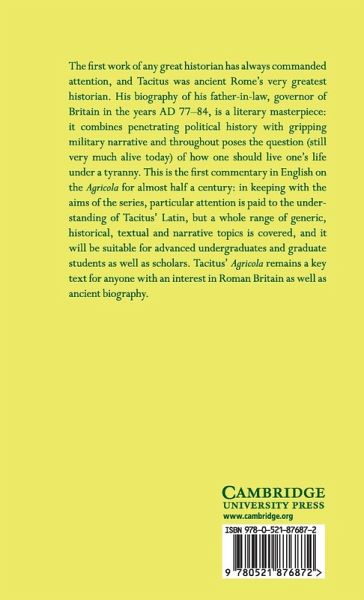 The first work of any great historian has always commanded attention, and Tacitus was ancient Rome's very greatest historian. His biography of his father-in-law, governor of Britain in the years AD 77-84, is a literary masterpiece: it combines penetrating political history with gripping military narrative and throughout poses the question (still very much alive today) of how one should live one's life under a tyranny. This is the first commentary in English on the Agricola for almost half a century: in keeping with the aims of the series, particular attention is paid to the understanding of Tacitus' Latin, but a whole range of generic, historical, textual and narrative topics is covered, and it will be suitable for advanced undergraduates and graduate students as well as scholars. Tacitus' Agricola remains a key text for anyone with an interest in Roman Britain as well as ancient biography.
