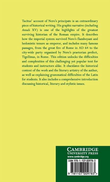 Tacitus' account of Nero's principate is an extraordinary piece of historical writing. His graphic narrative (including Annals XV) is one of the highlights of the greatest surviving historian of the Roman Empire. It describes how the imperial system survived Nero's flamboyant and hedonistic tenure as emperor, and includes many famous passages, from the Great Fire of Rome in AD 64 to the city-wide party organised by Nero's praetorian prefect, Tigellinus, in Rome. This edition unlocks the difficulties and complexities of this challenging yet popular text for students and instructors alike. It elucidates the historical context of the work and the literary artistry of the author, as well as explaining grammatical difficulties of the Latin for students. It also includes a comprehensive introduction discussing historical, literary and stylistic issues.
