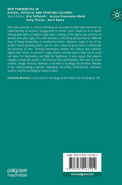 This book presents a critical rethinking of assumptions that have informed our understanding of women's engagement in contact sport, based on an in-depth ethnography with an English rugby team. Looking at the day-to-day concerns of women who play rugby, this work provides a refreshing perspective on different ways of doing femininities in postfeminist times. Women's rugby is one of the world's fastest growing sports, yet it is also a physical game that is traditionally the preserve of men. Tackling Stereotypes reveals the cultural and symbolic stigma that 'sticks' to women's rugby players and the tactics they use to carve out space for themselves and fight for legitimacy. It also argues that players engage in pragmatic politics, informed by their participation, that aims to enact realistic change. Branchu develops a situational sociology that furthers debates in the understanding of gender, belonging, becoming, embodiment, resistance politics, and the sociological study of sport.