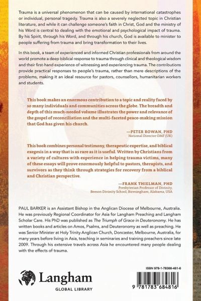 Trauma is a universal phenomenon that can be caused by international catastrophes or individual, personal tragedy. Trauma is also a severely neglected topic in Christian literature, and while it can challenge someone's faith in Christ, God and the ministry of his Word is central to dealing with the emotional and psychological impact of trauma. By his Spirit, through his Word, and through his church, God is available to minister to people suffering from trauma and bring transformation to their lives. In this book, a team of experienced and informed Christian professionals from around the world promote a deep biblical response to trauma through clinical and theological wisdom and their first-hand experience of witnessing and experiencing trauma. The contributions provide practical responses to people's trauma, rather than mere descriptions of the problems, making it an ideal resource for pastors, counsellors, humanitarian workers and students.