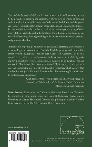 "Despite the ongoing globalisation of educational research, there remains a remarkable gap between research from the English-speaking world and scholarship from the European continent, particularly from Germany. One major reason for this gap is that very few texts from German educational scholars are available in English translation. This situation has really limited the opportunities for meaningful communication and exchange. This book is one of the very first texts that intervenes in the current state of affairs by making key publications from German scholars available to an English-speaking readership. This, in itself, is a major step forward. The focus on tact and the pedagogical relationship provides strong thematic coherence, which ensures that this book is not just a historical document but also a meaningful contribution to contemporary discussions." -Gert Biesta, Professor of Educational Theory and Pedagogy, University of Edinburgh, and Professor of Public Education, Maynooth University, Ireland