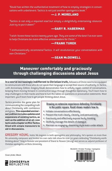 In Tactics, Gregory Koukl demonstrates how to artfully regain control of conversations, keeping them moving forward in constructive ways through thoughtful diplomacy. You'll learn how to maneuver comfortably and graciously through the minefields of a challenging discussion and how to get people thinking about Jesus.