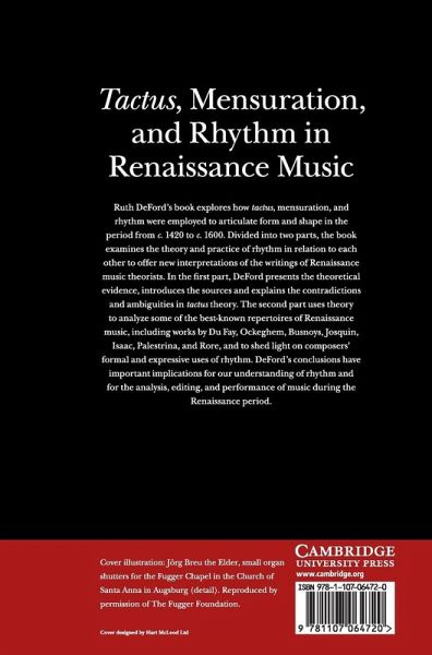 Ruth I. DeFord's book explores how tactus, mensuration, and rhythm were employed to articulate form and shape in the period from c.1420 to c.1600. Divided into two parts, the book examines the theory and practice of rhythm in relation to each other to offer new interpretations of the writings of Renaissance music theorists. In the first part, DeFord presents the theoretical evidence, introduces the manuscript sources and explains the contradictions and ambiguities in tactus theory. The second part uses theory to analyse some of the best known repertories of Renaissance music, including works by Du Fay, Ockeghem, Busnoys, Josquin, Isaac, Palestrina, and Rore, and to shed light on composers' formal and expressive uses of rhythm. DeFord's conclusions have important implications for our understanding of rhythm and for the analysis, editing, and performance of music during the Renaissance period.