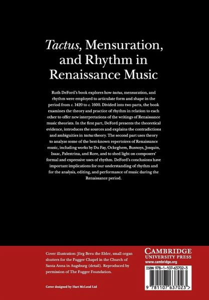 Ruth I. DeFord's book explores how tactus, mensuration, and rhythm were employed to articulate form and shape in the period from c.1420 to c.1600. Divided into two parts, the book examines the theory and practice of rhythm in relation to each other to offer new interpretations of the writings of Renaissance music theorists. In the first part, DeFord presents the theoretical evidence, introduces the manuscript sources and explains the contradictions and ambiguities in tactus theory. The second part uses theory to analyse some of the best known repertories of Renaissance music, including works by Du Fay, Ockeghem, Busnoys, Josquin, Isaac, Palestrina, and Rore, and to shed light on composers' formal and expressive uses of rhythm. DeFord's conclusions have important implications for our understanding of rhythm and for the analysis, editing, and performance of music during the Renaissance period.