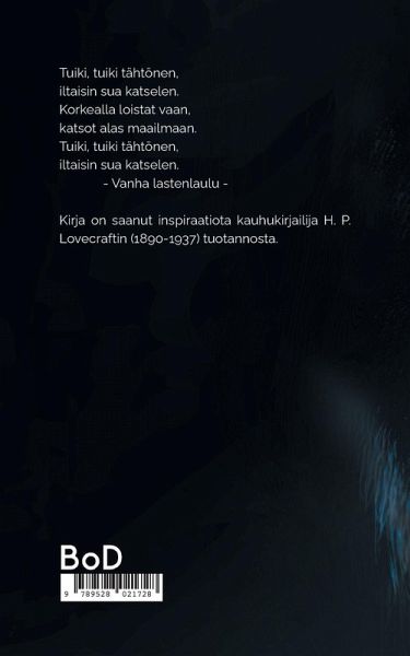 Tuiki, tuiki tähtönen, iltaisin sua katselen. Korkealla loistat vaan, katsot alas maailmaan. Tuiki, tuiki tähtönen, iltaisin sua katselen. - Vanha lastenlaulu - Kirja on saanut inspiraatiota kauhukirjailija H. P. Lovecraftin (1890-1937) tuotannosta.