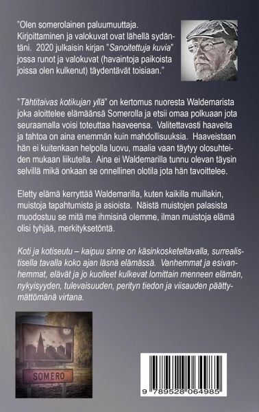 "Tähtitaivas kotikujan yllä" on kertomus nuoresta Waldemarista joka aloittelee elämäänsä Somerolla. Millaista oli lapsen ja nuoren elämä 50- ja 60-luvulla? Millaista oli olla nuori ilman älykännykkää, tietokonetta ja televisiokin teki vasta tuloaan? Nuoruus on täynnä haaveita, niiden toteutumiseen uskoo ja luottaa, kaikki on mahdollista. Valitettavasti haaveita ja tahtoa on usein enemmän kuin mahdollisuuksia, kaikki ei voi toteutua. Eletty elämä kerryttää muistoja tapahtumista ja asioista. Näistä muistojen palasista muodostuu se mitä me ihmisinä olemme. Ilman muistoja elämä olisi tyhjää, merkityksetöntä.