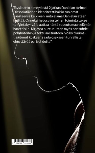 Täyskaarto pimeydestä 2 jatkaa Danielan tarinaa. Dissosiatiivinen identiteettihäiriö tuo omat haasteensa kaikkeen, mitä elämä Danielan eteen heittää. Onneksi hevosavusteinen toiminta tukee toimintakykyä ja auttaa häntä sopeutumaan elämän haasteisiin. Kirjassa pureudutaan myös parisuhdepohdintoihin ja seksuaalisuuteen. Voiko traumatisoitunut koskaan saada osakseen turvallista, eheyttävää parisuhdetta?