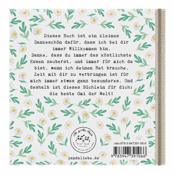 Oma macht die besten Pfannkuchen und sie backt jedes Jahr die leckersten Plätzchen. Oma ist einfach klasse und das muss auch mal gesagt werden. Sag DANKE mit diesem persönlichem Geschenkbuch.Das Buch ist eine Komposition aus den schönsten handgemalten Motiven von Nora von Gadenstedt und ganz besonders liebevollen Sprüche, die deine Oma zu Freudentränen rühren werden. Das besondere: Es gibt einige Seiten, die Platz für Lieblingsfotos und eigene Texte lassen. So kannst du diesem Geschenk eine persönliche Note verleihen!