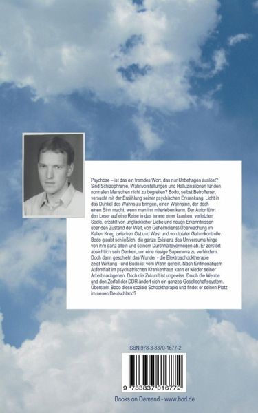 Psychose - ist das ein fremdes Wort, das nur Unbehagen auslöst? Sind Schizophrenie, Wahnvorstellungen und Halluzinationen für den normalen Menschen nicht zu begreifen? Bodo, selbst Betroffener, versucht, mit der Erzählung seiner psychischen Erkrankung Licht in das Dunkel des Wahns zu bringen, einen Wahnsinn, der doch einen Sinn macht, wenn man ihn miterleben kann. Der Autor führt den Leser auf eine Reise in das Innere einer kranken, verletzten Seele, erzählt von unglücklicher Liebe und neuen Erkenntnissen über den Zustand der Welt, von Geheimdienst-Überwachung im Kalten Krieg zwischen Ost und West und von totaler Gehirnkontrolle. Bodo glaubt schließlich, die ganze Existenz des Universums hinge von ihm ganz allein und seinem Durchhaltevermögen ab. Er zerstört absichtlich sein Denken, um eine riesige Supernova zu verhindern. Doch dann geschieht das Wunder - die Elektroschocktherapie zeigt Wirkung - und Bodo ist vom Wahn geheilt. Nach fünfmonatigem Aufenthalt im psychiatrischen Krankenhaus kann er wieder seiner Arbeit nachgehen. Doch die Zukunft ist ungewiss. Durch die Wende und den Zerfall der DDR ändert sich ein ganzes Gesellschaftssystem. Übersteht Bodo diese soziale Schocktherapie und findet er seinen Platz im neuen Deutschland?