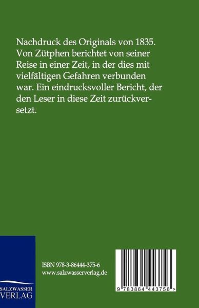 Nachdruck des Originals von 1835. Von Zütphen berichtet von seiner Reise in einer Zeit, in der dies mit vielfältigen Gefahren verbunden war. Ein eindrucksvoller Bericht, der den Leser in diese Zeit zurückversetzt.