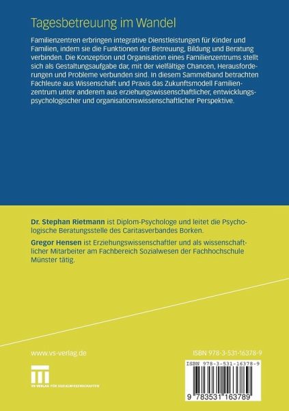 Familienzentren erbringen integrative Dienstleistungen für Kinder und Familien, indem sie die Funktionen der Betreuung, Bildung und Beratung verbinden. Die Konzeption und Organisation eines Familienzentrums stellt sich als Gestaltungsaufgabe dar, mit der vielfältige Chancen, Herausforderungen und Probleme verbunden sind. In diesem Sammelband betrachten Fachleute aus Wissenschaft und Praxis das Zukunftsmodell Familienzentrum unter anderem aus erziehungswissenschaftlicher, entwicklungspsychologischer und organisationswissenschaftlicher Perspektive.