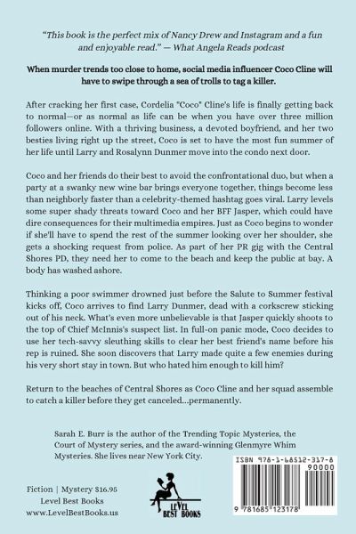 When murder trends too close to home, social media influencer Coco Cline will have to swipe through a sea of trolls to tag a killer. ¿ After cracking her first case, Cordelia "Coco" Cline's life is finally getting back to normal-or as normal as life can be when you have over three million followers online. With a thriving business, a devoted boyfriend, and her two besties living right up the street, Coco is set to have the most fun summer of her life until Larry and Rosalynn Dunmer move into the condo next door. ¿ Coco and her friends do their best to avoid the confrontational duo, but when a party at a swanky new wine bar brings everyone together, things become less than neighborly faster than a celebrity-themed hashtag goes viral. Larry levels some super shady threats toward Coco and her BFF Jasper, which could have dire consequences for their multimedia empires. Just as Coco begins to wonder if she'll have to spend the rest of the summer looking over her shoulder, she gets a shocking request from police. As part of her PR gig with the Central Shores PD, they need her to come to the beach and keep the public at bay. A body has washed ashore. Thinking a poor swimmer drowned just before the Salute to Summer festival kicks off, Coco arrives to find Larry Dunmer, dead with a corkscrew sticking out of his neck. What's even more unbelievable is that Jasper quickly shoots to the top of Chief McInnis's suspect list. In full-on panic mode, Coco decides to use her tech-savvy sleuthing skills to clear her best friend's name before his rep is ruined. She soon discovers that Larry made quite a few enemies during his very short stay in town. But who hated him enough to kill him? ¿ Return to the beaches of Central Shores as Coco Cline and her squad assemble to catch a killer before they get canceled...permanently.