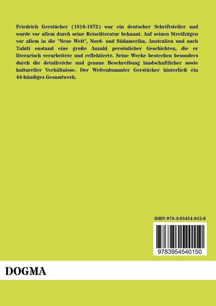 Friedrich Gerstäcker (1816-1872) war ein deutscher Schriftsteller und wurde vor allem durch seine Reiseliteratur bekannt. Auf seinen Streifzügen vor allem in die "Neue Welt", Nord- und Südamerika, Australien und nach Tahiti enstand eine große Anzahl persönlicher Geschichten, die er literarisch verarbeitete und reflektierte. Seine Werke bestechen besonders durch die detailreiche und genaue Beschreibung landschaftlicher sowie kultureller Verhältnisse. Der Weltenbummler Gerstäcker hinterließ ein 44-bändiges Gesamtwerk.
