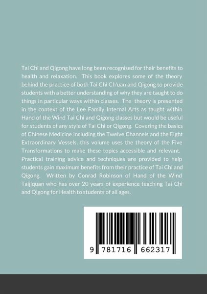 Tai Chi and Qigong have long been recognised for their benefits to health and relaxation. This book explores some of the theory behind the practice of both Tai Chi Ch'uan and Qigong to provide students with a better understanding of why they are taught to do things in particular ways within classes. The theory is presented in the context of the Lee Family Internal Arts as taught within Hand of the Wind Tai Chi and Qigong classes but would be useful for students of any style of Tai Chi or Qigong. Covering the basics of Chinese Medicine including the Twelve Channels and the Eight Extraordinary Vessels, this volume uses the theory of the Five Transformations to make these topics accessible and relevant. Practical training advice and techniques are provided to help students gain maximum benefits from their practice of Tai Chi and Qigong. Written by Conrad Robinson of Hand of the Wind Taijiquan who has over 20 years of experience teaching Tai Chi and Qigong for Health to students of all ages.