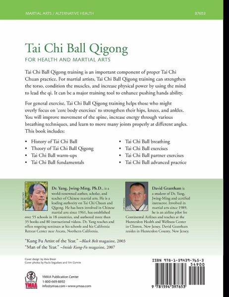Tai chi ball qigong training is an important component of proper tai chi chuan practice Once kept secret in martial arts societies, Tai Chi Ball training has the potential to help develop internal strength, whole body connections, yielding and neutralizing skills, and promotes abundant qi flow. For decades, this training was widely unknown. Dr. Yang has taken the original 24 patterns and extended them to 48 patterns in order to expand the health benefits and to target the needs of martial artists. For martial artists, tai chi ball qigong training can strengthen the torso, condition the muscles, and increase physical power by using the mind to lead the qi. It can be a major training tool to enhance pushing hands ability. As a health exercise, tai chi ball qigong training will improve movement of the spine, increase energy through various breathing techniques, and aid in moving many joints of your body properly, and at different angles. "In all my years of teaching, I believe that Tai Chi Ball Qigong is one of the most powerful exercises I have ever seen to rebuild the entire body's health."-Dr. Yang, Jwing-Ming This book includes * History of tai chi ball * Theory of tai chi ball qigong * Tai chi ball warm-ups * Tai chi ball fundamentals * Tai chi ball breathing * Tai chi ball exercises * Tai chi ball partner exercises * Tai chi ball advanced practice