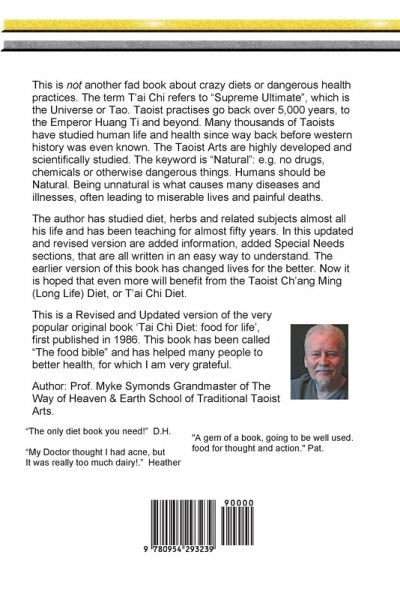 T'ai Chi Diet is Natural/Universal/Tao. Ch'ang Ming means "Long Life". For over 5,000 years the Taoists have studied health and diet in a scientific way, but without drugs or chemicals. The Author has studied diet and health related subjects for over 50 years. His Old Master wrote the very first book in English about Ch'ang Ming, but the author has expanded on this to create what one reviewer describes as "The Food Bible" - all you need to know about foods, what they do for you or to you. By understanding what is good for you, you can slowly cut out those that are bad for you and which cause ill-health. The first edition of this book has sold world-wide and has become very popular as not only a health help but as a guide for those learning about diet and nutrition too, especially those interested in the study of TCM - Traditional Chinese Medicine, which includes wonders like Qigong, Acupuncture, Herbs, Taoist Yoga and more. This edition has an expanded 'Special Needs' section and just a few small updates regarding vitamins and minerals. Text has been made slightly bigger for easier reading, hence more pages overall - 232 pages.