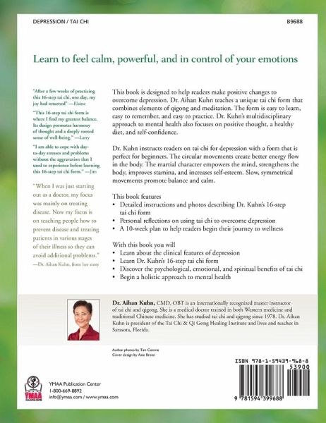 This book is designed to help readers understand depression and make positive changes to overcome it. Dr. Aihan Kuhn teaches a unique tai chi form that combines elements of Chen and Yang styles as well as qigong and meditation. The form is easy to learn, easy to remember, and easy to practice. Dr. Kuhn’s multidisciplinary approach to mental health also focuses on positive thought, a healthy diet, and self-confidence. Perfect for beginners and experienced practitioners alike. The circular movements create better energy flow in the body. The martial character empowers the mind, strengthens the body, improves stamina, and increases self-esteem. Slow, symmetrical movements promote balance and calm. This book features: * Detailed instructions and photos describing Dr. Kuhn’s 16-step tai chi form * Personal reflections on using tai chi to overcome depression * A 10-week plan to help readers begin their journey to wellness With this book you will: * Learn about the clinical features of depression * Learn Dr. Kuhn’s 16-step tai chi form * Discover the psychological, emotional, and physical benefits of tai chi * Begin a holistic approach to managing mental health “When I was just starting out as a doctor, my focus was mainly on treating disease,” Dr. Kuhn writes. “Now my focus is on teaching people how to prevent disease and treating patients in the early stages of their illness so they can avoid additional problems.”