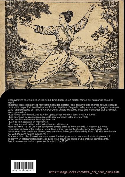 Découvrez les fondements du Tai Chi Chuan et du Qi Gong à travers ce guide pratique complet destiné aux débutants dans l'art martial chinois.Ce livre de tai chi vous accompagne pas à pas dans l'apprentissage de cet art martial interne millénaire. Il commence par une exploration approfondie des origines historiques et des principes philosophiques du tai chi chuan, permettant de comprendre son évolution d'art martial à pratique de bien-être.La première partie se concentre sur les bases essentielles : la respiration, la posture et l'équilibre. Vous apprendrez les techniques fondamentales de relaxation et les exercices préparatoires indispensables pour une pratique sûre et efficace du tai chi.La section suivante aborde les mouvements de base et leur enchaînement, en intégrant les principes du tai chi qi gong. Vous découvrirez comment coordonner la respiration avec le mouvement, et comment développer la circulation de l'énergie interne.Le guide propose ensuite une progression vers destechniques plus avancées, incluant :- Les formes traditionnelles- Les exercices avec partenaire- Le travail sur les méridiens énergétiques- Les applications en self-défenseUne attention particulière est portée aux aspects santé du taichi, avec des chapitres dédiés aux :- Bénéfices pour l'équilibre physique- Effets sur la gestion du stress- Impacts sur la concentration- Méthodes de prévention des blessuresChaque section est enrichie d'illustrations claires et de schémas explicatifs, permettant une compréhension optimale des mouvements et des principes enseignés.Que vous cherchiez à améliorer votre santé, à développer votre équilibre ou à découvrir un art martial chinois authentique, ce livre tai chi vous guidera efficacement dans votre pratique quotidienne.Ce livre a été créé en utilisant des technologies innovantes telles que l'Intelligence Artificielle ainsi que des outils spécialement développés - par exemple, pour la recherche d'idées, la recherche d'informations, l'écriture, la relecture, l'assurance qualité et la conception d'illustrations décoratives.Ainsi, nous souhaitons vous offrir une expérience de lecture particulièrement cohérente, moderne et d'une qualité encore supérieure.