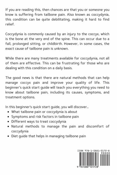 Are you or someone you know suffering from the debilitating pain of coccydynia, commonly known as tailbone pain? This condition, often caused by injuries to the coccyx, can be incredibly challenging to manage, disrupting daily life and causing frustration for those seeking relief. "Relief from Coccydynia" is your essential beginner's guide to understanding and addressing tailbone pain. This comprehensive book provides you with valuable insights into the causes, symptoms, and treatment options for coccydynia, offering hope for a better quality of life. Inside this guide, you'll discover: - What coccydynia, or tailbone pain, entails - The common symptoms and risk factors associated with coccydynia - Various approaches to treating and alleviating coccydynia - Natural methods to effectively manage pain and discomfort - A helpful diet guide designed to aid in tailbone pain management If you're tired of living with tailbone pain and seeking practical solutions to improve your well-being, "Relief from Coccydynia" is your go-to resource. Start your journey towards a pain-free life today with this informative and empowering guide.