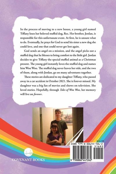 In the process of moving to a new house, a young girl named Tiffany loses her beloved stuffed dog, Rex. Her brother, Jordan, is responsible for this unfortunate event. At first, he is unsure what to do. Eventually, he prays for God to send his sister a new dog she could love, and one that could never get lost again. God sends an angel on a mission, and the angel picks out a stuffed dog that he blesses to bring comfort to the little girl. Jordan decides to give Tiffany the special stuffed animal as a Christmas present. The young girl instantly loves the stuffed dog and names him Woo Woo. The stuffed dog never leaves her side, and the two of them, along with Jordan, go on many adventures together. These stories are dedicated to my daughter Tiffany, who passed away in a car accident in October 2021. She is forever missed. My daughter was a big fan of movies and shows on television. She loved stories. Hopefully, through Tales of Woo Woo, her memory will live on forever.