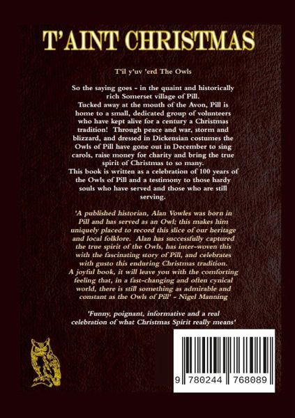 'Til 'Y'uv 'erd The Owls'. So the saying goes - in the quaint and historically rich Somerset village of Pill. Tucked away at the mouth of the river Avon, Pill is home to a small, dedicated group of volunteers who have kept alive a Christmas tradition for over a century! Through peace and war, storm and blizzard, and dressed in Dickensian costumes, the Owls of Pill have gone out in December to sing carols, raise money for charity and bring the true spirit of Christmas to so many. This book is written as a celebration of 100 years of the Owls of Pill and a testimony to those hardy souls who have served and those who are still serving. A joyful book, it will leave you with the comforting feeling that, in a fast-changing world, there is still something as admirable and constant as the Owls of Pill'