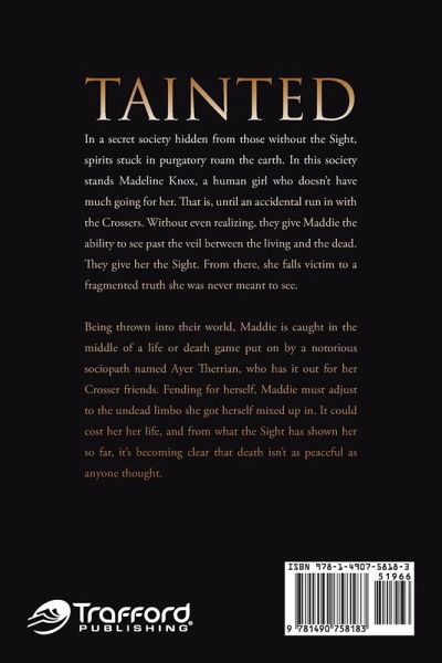 In a secret society hidden from those without the Sight, spirits stuck in purgatory roam the earth. In this society stands Madeline Knox, a human girl who doesn't have much going for her. That is, until an accidental run in with the Crossers. Without even realizing, they give Maddie the ability to see past the veil between the living and the dead. They give her the Sight. From there, she falls victim to a fragmented truth she was never meant to see. Being thrown into their world, Maddie is caught in the middle of a life or death game put on by a notorious sociopath named Ayer Therrian, who has it out for her Crosser friends. Fending for herself, Maddie must adjust to the undead limbo she got herself mixed up in. It could cost her her life, and from what the Sight has shown her so far, it's becoming clear that death isn't as peaceful as anyone thought.