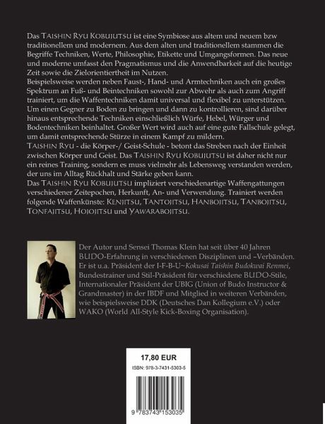 Das TAISHIN RYU KOBUJUTSU ist eine Symbiose aus altem und neuem bzw. traditionellem und modernem. Aus dem alten und traditionellen stammen die Begriffe Techniken, Werte, Philosophie, Etikette und Umgangsformen. Das neue und moderne umfasst den Pragmatismus und die Anwendbarkeit auf die heutige Zeit sowie die Zielorientiertheit im Nutzen.Beispielsweise werden neben Faust-, Hand- und Armtechniken auch ein großes Spektrum an Fuß- und Beintechniken sowohl zur Abwehr als auch zum Angriff trainiert, um die Waffentechniken damit universal und flexibel zu unterstützen. Um einen Gegner zu Boden zu bringen und dann zu kontrollieren, sind darüber hinaus entsprechende Techniken einschließlich Würfe, Hebel, Würger und Bodentechniken beinhaltet. Großer Wert wird auch auf eine gute Fallschule gelegt, um damit entsprechende Stürze in einem Kampf zu mildern.TAISHIN RYU - die Körper-/ Geist-Schule - betont das Streben nach der Einheit zwischen Körper und Geist. Das TAISHIN RYU KOBUJUTSU ist daher nicht nur ein reines Training, sondern es muss vielmehr als Lebensweg verstanden werden, der uns im Alltag Rückhalt und Stärke geben kann.Das TAISHIN RYU KOBUJUTSU impliziert verschiedenartige Waffengattungen verschiedener Zeitepochen, Herkunft, An- und Verwendung. Trainiert werden folgende Waffenkünste: KENJITSU, TANTOJITSU, HANBOJITSU, TANBOJITSU, TONFAJITSU, HOJOJITSU und YAWARABOJITSU.