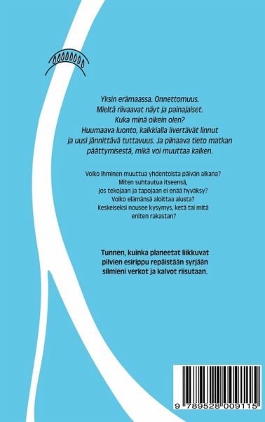 Yksin erämaassa. Onnettomuus. Mieltä riivaavat näyt ja painajaiset. Kuka minä oikein olen? Huumaava luonto, kaikkialla livertävät linnut ja uusi jännittävä tuttavuus. Ja piinaava tieto matkan päättymisestä, joka voi muuttaa kaiken. Voiko ihminen muuttua yhdentoista päivän aikana? Miten suhtautua itseensä, jos tekojaan ja tapojaan ei enää hyväksy? Voiko elämänsä aloittaa alusta? Keskeiseksi nousee kysymys, ketä tai mitä eniten rakastan. "Tunnen, kuinka planeetat liikkuvat pilvien esirippu repäistään syrjään silmieni verkot ja kalvot riisutaan." https://mysteerimuste.blogspot.com