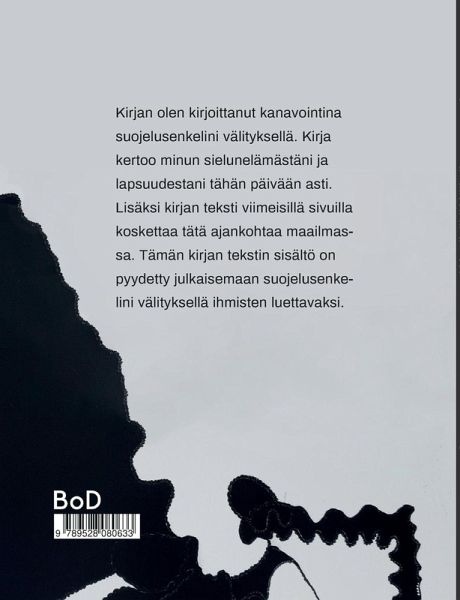 Kirjan olen kirjoittanut kanavointina suojelusenkelini välityksellä. Kirja kertoo minun sielunelämästäni ja lapsuudestani tähän päivään asti. Lisäksi kirjan teksti viimeisillä sivuilla koskettaa tätä ajankohtaa maailmassa. Tämän kirjan tekstin sisältö on pyydetty julkaisemaan suojelusenkelini välityksellä ihmisten luettavaksi.