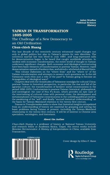 1: Retrospect; 1: The Taiwanese Nostalgia for Cultural China (1895-1950); 2: Postwar Taiwan in Historical Perspective; 3: Transformation of Farmers' Social Consciousness (1950-1970); 4: Transformation of Confucianism (1950-1980); 5: A Contemporary Confucianist's Postwar Taiwan Experience: The Case of Hsu Fu-kuan (1902-1982); 2: Prospect; 6: The Development of Taiwanese Consciousness: Retrospect and Prospect; 7: "Mutual Historical Understanding": The Basis for Taiwan-Mainland Relations in the Twenty-First Century; Epilogue