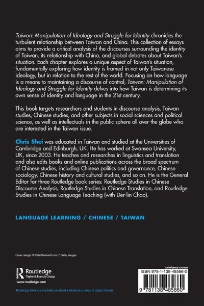 Taiwan: Manipulation of Ideology and Struggle for Identity chronicles the turbulent relationship between Taiwan and China. This collection of essays aims to provide a critical analysis of the discourses surrounding the identity of Taiwan, its relationship with China, and global debates about Taiwan's situation. Each chapter explores a unique aspect of Taiwan's situation, fundamentally exploring how identity is framed in not only Taiwanese ideology, but in relation to the rest of the world. Focusing on how language is a means to maintaining a discourse of control, Taiwan: Manipulation of Ideology and Struggle for Identity delves into how Taiwan is determining its own sense of identity and language in the 21st century. This book targets researchers and students in discourse analysis, Taiwan studies, Chinese studies, and other subjects in social sciences and political science, as well as intellectuals in the public sphere all over the globe who are interested in the Taiwan issue.