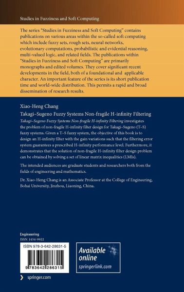 "In this book non-fragile H filtering problems for Takagi-Sugeno fuzzy systems are considered. ... Numerical examples are given to illustrate the design methods of each filter. All chapters of this book are written in a unified form that helps readers to see the key steps in solving non-fragile H filtering problems for Takagi-Sugeno fuzzy systems. This book is useful for control engineers and fuzzy control researchers working in the area of fuzzy filtering." (Hitoshi Katayama, Mathematical Reviews, Issue 2012 m)