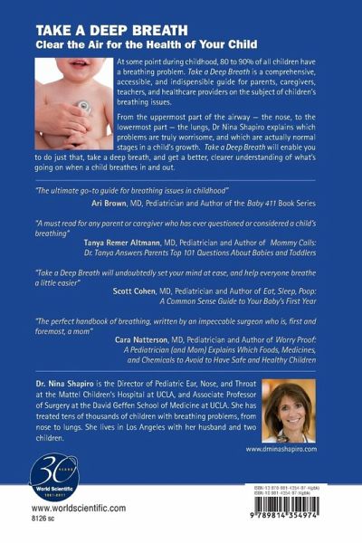 "Take a Deep Breath" is a comprehensive, accessible, and indispensible guide for parents, caregivers, teachers, pediatricians, and other healthcare providers on the subject of children's breathing issues. The book provides a thorough review of breathing issues, differentiating the normal and abnormal for all ages, and at all levels of breathing passages. "Take a Deep Breath" explains all of the puzzling and oftentimes distressing breathing patterns our children have throughout development. From the uppermost part of the breathing apparatus, the nose, to the lowermost part, the lungs, this book explains which problems are truly worrisome, and which are actually normal stages in a child's growth. "Take a Deep Breath" will enable the reader to do just that, take a deep breath, and get a better, clearer understanding about what's going on when your children breathe in and out. While pediatricians and other healthcare providers have expertise in all aspects of childhood illness, this book sheds new light on the latest research in pediatric breathing issues, sleep issues, and airway safety. Consisting of age-based sections, with location-based and problem-based chapters for each age group, each chapter also provides a 'to-do' list, offering successful preventions and treatments that can easily be done at home. About 80 to 90% of children, at one time or another, have breathing problems. "Take a Deep Breath" will be a welcome, indispensible tool in all households with children. Day care providers, grandparents, babysitters and nannies, and parents' clubs will all benefit from this book immensely.