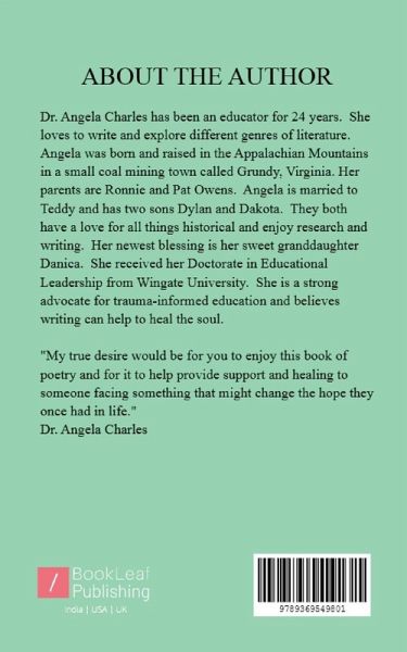 This book of poetry emphasizes how hope can be the essence of healing and overall success for any individual. Take A Deep Breath comes from a term her granddaughter using when she sees someone upset or is upset herself. Hope is something we all should be able to live by. It is the thing that dreams are made of for sure. Growing up in a coal mining town and seeing things change so much over the years gave a strong sense of hope for the future. These poems are written from the author's journey through fears as a child and grief for the loss of her mom. Healing and hope have to come together. Hope is the beautiful emotion and experience that comes as a reward from the healing experience.