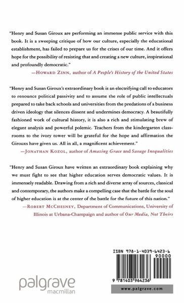 "Henry and Susan Giroux are performing an immense public service with this book. It is a sweeping critique of how our culture, especially the educational establishment, has failed to prepare us for the crises of our time. And it offers hope for the possibility of resisting that and creating a new culture, inspirational and profoundly democratic." - Howard Zinn, author of A People's History of the United States