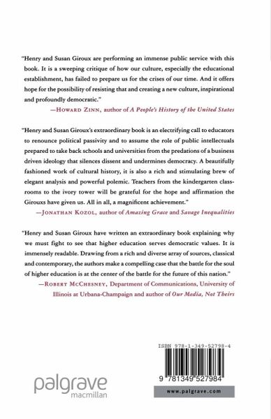 "Henry and Susan Giroux are performing an immense public service with this book. It is a sweeping critique of how our culture, especially the educational establishment, has failed to prepare us for the crises of our time. And it offers hope for the possibility of resisting that and creating a new culture, inspirational and profoundly democratic." - Howard Zinn, author of A People's History of the United States