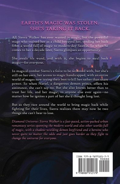 Earth's magic was stolen. She's taking it back. All Sierra Walker has ever wanted is magic, but the powerful mage who trained her as a child betrayed her, sending her back from a world full of magic to modern-day Seattle. So when he comes to her a decade later, Sierra glimpses an opportunity: She steals his wand, and with it, she begins to steal back magic-for everyone. In magical combat Sierra's a force to be reckoned with, but she's still on her own, her access to magic handicapped, with an entire world of mages now trying their best to kill her rather than share power. So when Nariel, a dangerous demon lord, offers his assistance, she can't say no. But she also knows better than to trust her life, and her magic, to anyone else ever again-no matter how he ignites a part of her she'd thought long lost. But as they race around the world to bring magic back while fighting for their lives, Sierra realizes there may now be two things she can't bear to lose. Diamond Universe: Sierra Walker is a fast-paced, action-packed urban romantasy series spanning the modern world and also other worlds full of magic, with a shadow-wielding demon boyfriend and a heroine who never quits no matter the odds and just goes harder as they fight to change the universe for everyone. Expect the heat level to escalate dramatically in each book.