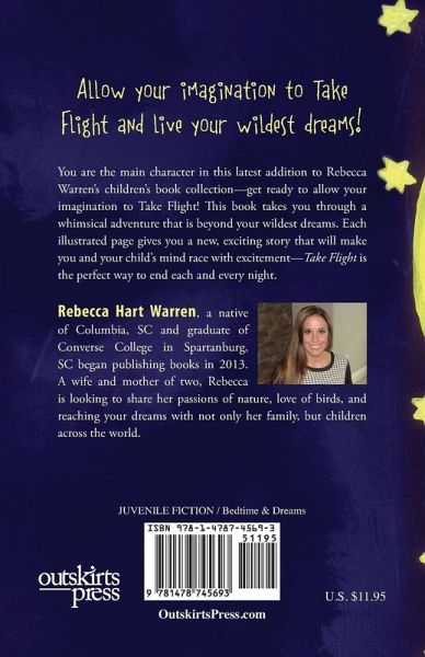 Allow your imagination to Take Flight and live your wildest dreams! You are the main character in this latest addition to Rebecca Warren's children's book collection-get ready to allow your imagination to Take Flight! This book takes you through a whimsical adventure that is beyond your wildest dreams. Each illustrated page gives you a new, exciting story that will make you and your child's mind race with excitement-Take Flight is the perfect way to end each and every night.