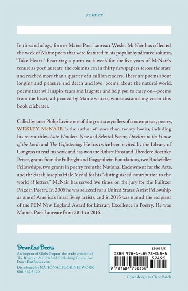 It is commonplace that poetry is the literary form that best expresses our deepest feelings. Those who seldom read poetry regularly turn to it for weddings, funerals, and other milestones. Former Maine Poet Laureate Wesley McNair selected the poems in this anthology for his weekly newspaper column from the work of poets all over Maine, representing a wide cultural view of the state.