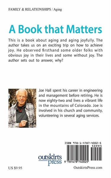 This is a book about aging, and aging joyfully. This is a book about aging and aging joyfully. The author takes us on an exciting trip on how to achieve joy. He observed firsthand some older folks with obvious joy in their lives and some without joy. The author sets out to answer, why?