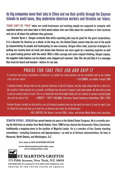 Senator Dorgan is sounding the alarm: With our country up to our neck in trade debt-$2 billion a day-as we import energy and export jobs, it is long past the time to tackle the trade crisis head-on. By outsourcing hundreds of thousands of U.S. jobs, American companies are essentially hollowing out our economic base, and with the current White House beholden to Big Oil and cronies straight out of the Gilded Age, no one is guarding the rights of the American worker. Take This Job and Ship It is not just a dire warning-it also offers many sobering cures before our current policies put American national security even further at risk.