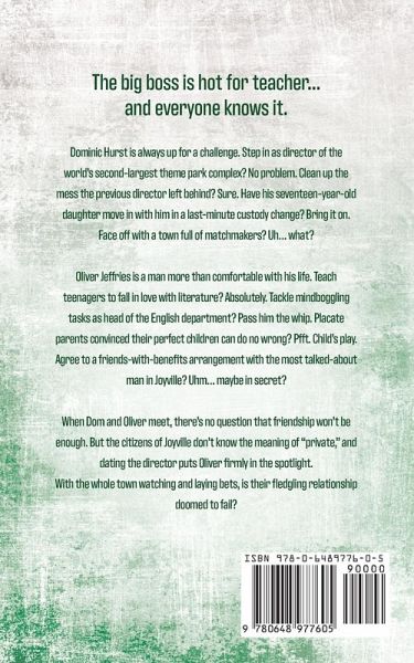The big boss is hot for teacher... and everyone knows it.Dominic Hurst is always up for a challenge. Step in as director of the world's second-largest theme park complex? No problem. Clean up the mess the previous director left behind? Sure. Have his seventeen-year-old daughter move in with him in a last-minute custody change? Bring it on.Face off with a town full of matchmakers? Uh... what?Oliver Jeffries is a man more than comfortable with his life. Teach teenagers to fall in love with literature? Absolutely. Tackle mindboggling tasks as head of the English department? Pass him the whip. Placate parents convinced their perfect children can do no wrong? Pfft. Child's play.Agree to a friends-with-benefits arrangement with the most talked-about man in Joyville? Uhm... maybe in secret?When Dom and Oliver meet, there's no question that friendship won't be enough. But the citizens of Joyville don't know the meaning of "private," and dating the director puts Oliver firmly in the spotlight. With the whole town watching and laying bets, is their fledgling relationship doomed to fail?
