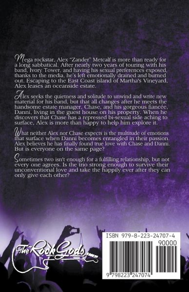 Mega rock star, Alex "Zander" Metcalf is burned out after nearly two years touring with his band, as well as emotionally drained after his sexual preferences were exposed by the media. He is ready for a long sabbatical – alone, and retreats to the east coast island of Martha's Vineyard; leasing an oceanside estate. Alex seeks the quiet lifestyle of a recluse to write new material for his band, only to meet the handsome estate manager, Chase, and his gorgeous fiancée, Danni, living in the guest house on his property. Alex's hope of solitude is soon forgotten when he discovers Chase has a repressed bi-sexual side that is aching to surface and Alex is more than happy to help him explore it. What neither Alex or Chase expects is the emotional power of their chemistry expanding to involve the three of them when Danni becomes entangled in their passion. Alex believes he has finally found his perfect ménage relationship with Chase and Danni. Sometimes two isn't enough and it takes three to complete the union of a fulfilled love. But, will their new relationship be strong enough to survive when real life wants to punish them for their unconventional love? And, can they be confident in the strength of their love to take the 'happily ever after' they can only give each other?