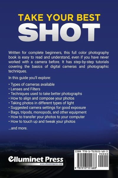 Written for complete beginners, this photography book is easy to read and understand, even if you have never worked with a camera before, or a budding photographer who wants to improve. It has step-by-step tutorials covering the basics of digital cameras and photographic techniques. In this guide you'll exploreTypes of cameras available How digital cameras work Camera Cards Lenses and Filters Techniques used to take better photographs How to align and compose your photos Suggested camera settings Understanding f-stops, shutter speed and ISO Understanding depth of field and focus Taking photos and using shooting modes How to transfer your Photos to your computer Basic Photo Editing and Touchup We want to create the best possible resource to help you, so if we've missed anything out then please get in touch using office@elluminetpress.com and let us know. Thanks.
