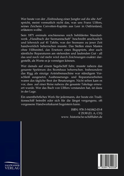 Ein unentbehrliches Werk für jedermann, der heute ein Traditionsschiff betreibt oder sich für die längst vergangene, oft vergessene Handwerkskunst begeistern kann.