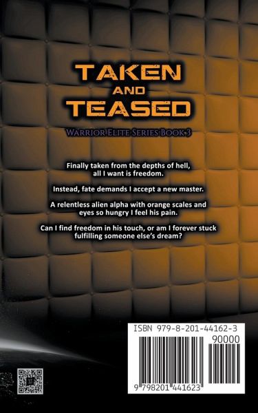 "You're mine, little omega. Mine to claim. Mine to pleasure. Mine to protect." -Fek Locked in an underground lab by evil scientists, Veena stays strong through hours of torture for the sake of her omega sisters, but when soldiers invade the facility and declare them rescued, she collapses in relief. She wakes above ground for the first time in her adult life, but she doesn't find the freedom of her dreams. She gets Fek instead, a massive alien alpha with orange scales and reptilian eyes. As a Warrior Elite-a top secret Special Operations unit of super soldier aliens-and the brother of a seer, he dreads the call of the mate bond. Until he feels Veena's presence and rampages across the desert, destroying everything in his path to claim her. Their wild union is both a dream come true and the beginning of a nightmare. She's his omega lifemate, but a dark prophecy looms over his future. When Veena suffers an unexpected heat and becomes pregnant in the wilderness, Fek desperately tries to get them to safety, but fate lands them back in the clutches of evil scientists. Can they escape together and find their happily ever after, or will they be forever doomed? Taken and Teased (Warrior Elite Series Book 3) is a full-length, scorchin' hot, dark sci-fi alien romance set on a far-off dystopian planet. Intended for +18 readers. For a full list of content warnings, please visit the author's website.