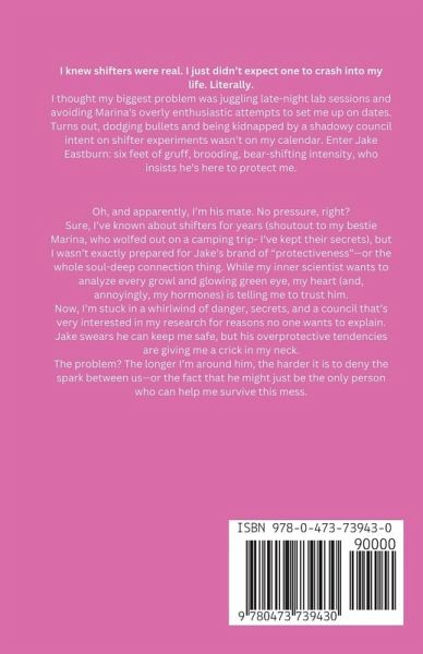 I knew shifters were real. I just didn't expect one to crash into my life. Literally. I thought my biggest problem was juggling late-night lab sessions and avoiding Marina's overly enthusiastic attempts to set me up on dates. Turns out, dodging bullets and being kidnapped by a shadowy council intent on shifter experiments wasn't on my calendar. Enter Jake Eastburn: six feet of gruff, brooding, bear-shifting intensity, who insists he's here to protect me. Oh, and apparently, I'm his mate. No pressure, right? Sure, I've known about shifters for years (shoutout to my bestie Marina, who wolfed out on a camping trip- I've kept their secrets), but I wasn't exactly prepared for Jake's brand of "protectiveness"-or the whole soul-deep connection thing. While my inner scientist wants to analyze every growl and glowing green eye, my heart (and, annoyingly, my hormones) is telling me to trust him. Now, I'm stuck in a whirlwind of danger, secrets, and a council that's very interested in my research for reasons no one wants to explain. Jake swears he can keep me safe, but his overprotective tendencies are giving me a crick in my neck. The problem? The longer I'm around him, the harder it is to deny the spark between us-or the fact that he might just be the only person who can help me survive this mess.