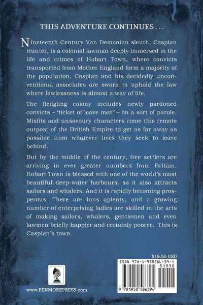 This adventure continues…. Nineteenth Century Van Demonian sleuth, Caspian Hunter, is a colonial lawman deeply immersed in the life and crimes of Hobart Town, where convicts transported from Mother England form a majority of the population. Caspian and his decidedly unconventional associates are sworn to uphold the law where lawlessness is almost a way of life. The fledgling colony includes newly pardoned convicts – ‘ticket of leave men’ – on a sort of parole. Misfits and unsavoury characters come this remote outpost of the British Empire to get as far away as possible from whatever lives they seek to leave behind. But by the middle of the century, free settlers are arriving in ever greater numbers from Britain. Hobart Town is blessed with one of the world’s most beautiful deep-water harbours, so it also attracts sailors and whalers. And it is rapidly becoming prosperous. There are inns aplenty, and a growing number of enterprising ladies are skilled in the arts of making sailors, whalers, gentlemen and even lawmen briefly happier and certainly poorer. This is Caspian’s town. A murder most foul committed with the most blunt of instruments, a hot flat iron, leads Caspian to the prison hell of Port Arthur, traveling on a railway man-powered by convict slaves, and an illicit liaison with a British Army officer’s wife. The motive for murder: a diamond worth a king’s ransom, hidden in a most incongruous place. Tasmania’s master storyteller, Craig Godfrey, in this, his 16th novel, takes the reader on an adventure populated by characters, crimes and conflicts set on this beautiful island at the edge of the world. It will leave you wanting more.