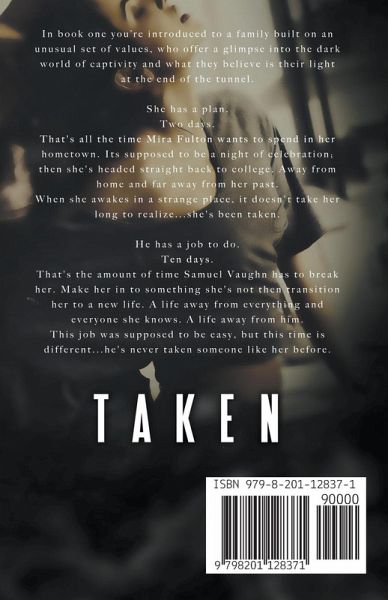 She has a plan. Two days. That's all the time Mira Fulton wants to spend in her hometown. Its supposed to be a night of celebration; then she's headed straight back to college. Away from home and far away from her past. When she awakes in a strange place, it doesn't take her long to realize...she's been taken. He has a job to do. Ten days. That's the amount of time Samuel Vaughn has to break her. Make her in to something she's not then transition her to a new life. A life away from everything and everyone she knows. A life away from him. This job was supposed to be easy, but this time is different...he's never taken someone like her before.